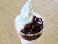 含红豆蛋筒冰激淋 远别町道路休息站"富士见"售货店 远别町特产红豆和新鲜牛奶味道香醇浓郁,红豆多多! |